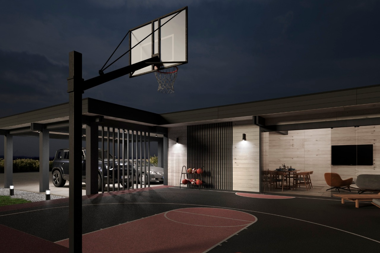 Расположение: Онегин Парк Площадь: 84 м² Тип гаража: гараж на 3 автомобиля с комнатой для охраны Количество машиномест: 3